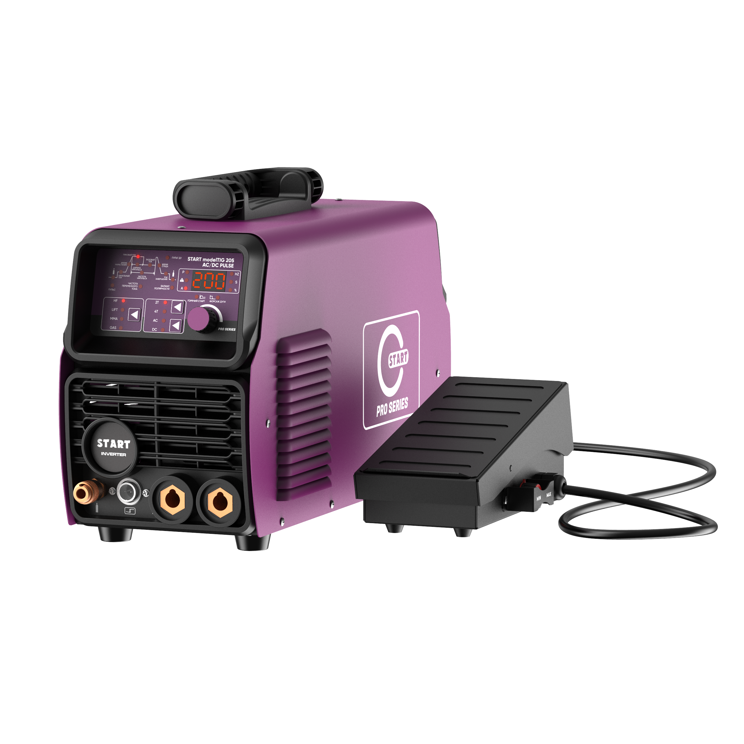 START 205 modelTIG AC/DC PULSE - Инверторный источник для аргонно-дуговой сварки на переменном и постоянном токе и сварки штучными электродами. Импульсный режим позволяет получить более красивый вид сварочного шва и контролировать тепловложения в зоне сварки. С помощью интуитивно понятной панели управления легко настроить любые параметры сварочной дуги под решаемые задачи.