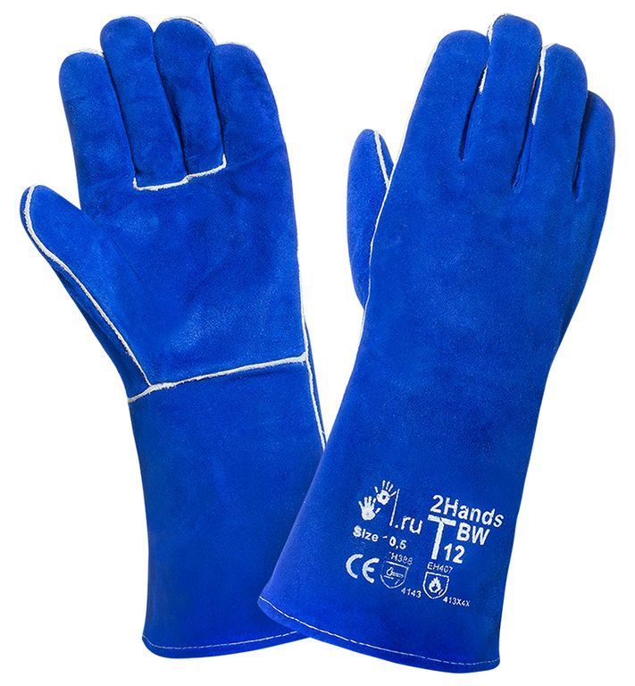 Перчатки сварщика (краги) 2Hands (Ту Хэндс) спилковые T12 BW изготовлены из специально обработанного спилка сорта АВ, средняя толщина спилка не меньше, чем у базовой перчатки Т12 (1,4 +/-0,2 мм), но при этом спилок более мягкий, что обеспечивает высокую чувствительность и подвижность пальцев, обработка обеспечивает сохранение мягкости спилка в течение длительного времени хранения, усилены вставками из кожи, используется специальная упрочненная нить. Перчатки изготавливаются из высококачественного спилка спинной части шкур, прошедшего предварительный отбор. По ЕН 420 (удобство манипулирования) степень свободы движений для перчаток - T12 Base Wall (BW) выше, чем у базовой Т12 (+1). Материал подкладки аналогичен базовой Т12 - флис в кистевой части и брезент на манжете, но подкладка полностью сшита по периметру, что создает дополнительный комфорт. Перчатки для защиты от механических воздействий и повышенных температур 2Hands - T12 Base Wall это более сложный дизайн базовой перчатки Т12, рекомендуются как защитное средство рук при проведении длительных сварочных и подготовительных (механическая обработка) работ. Большая толщина спилка, который используется для T12 Base Wall, и большой вес, обеспечивают хорошие показатели защиты, а мягкость и гибкость перчатки снижают утомляемость рук и позволяют осуществлять точные операции. Размер 10,5.